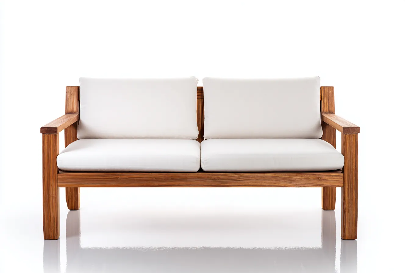 Matériaux et fabricationFabriqué à partir de bois massif à la teinte naturelle, ce canapé allie robustesse et charme authentique. Les coussins d'assise et de dossier sont recouverts d'un tissu blanc résistant, agréable au toucher et conçu pour un usage extérieur prolongé.